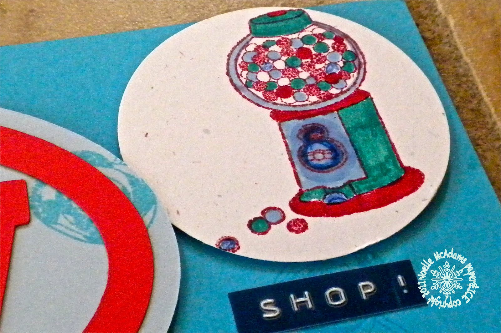 The final touch was to make some accents with some of the other stamps and punches. I did color in the gumball machine image for the top of the page. And it's done! One more set of photos down! I have 2 HUGE boxes of pics I'm trying to blow my way through. Let's see if I can get caught up! Hey, a girl can dream, right? :) Well, that's all for me today! Please come play with us at CQC! I'd love to see what YOU come up with! :) xoxox, Noelle
