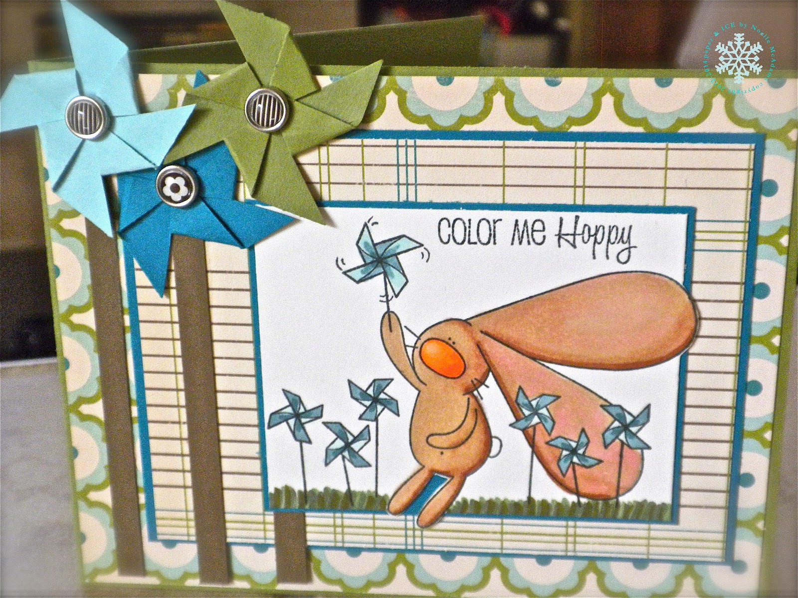 What a super cute card Noelle. Love the image, the colors... the pinwheels look great with the brads.